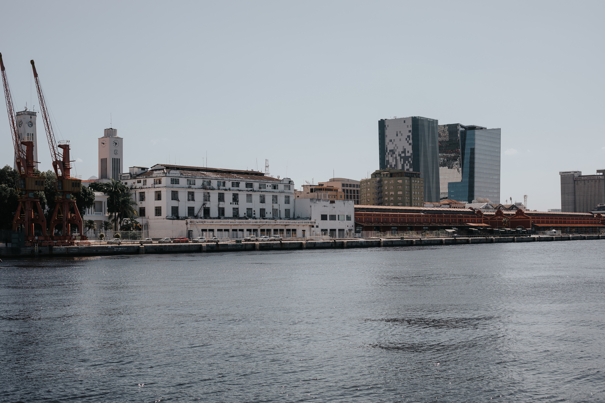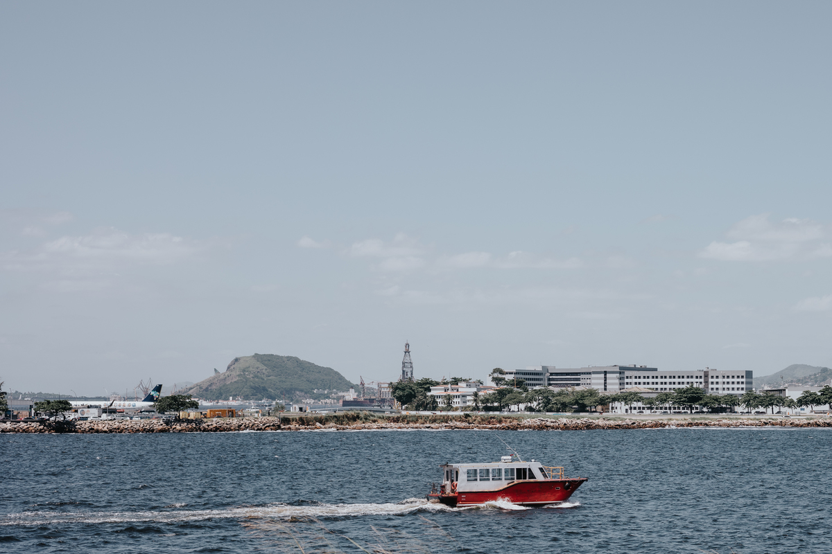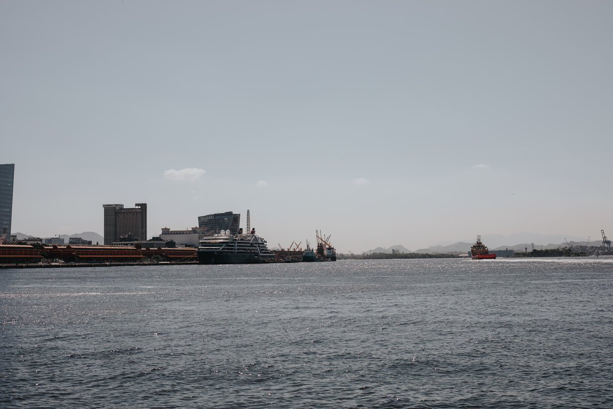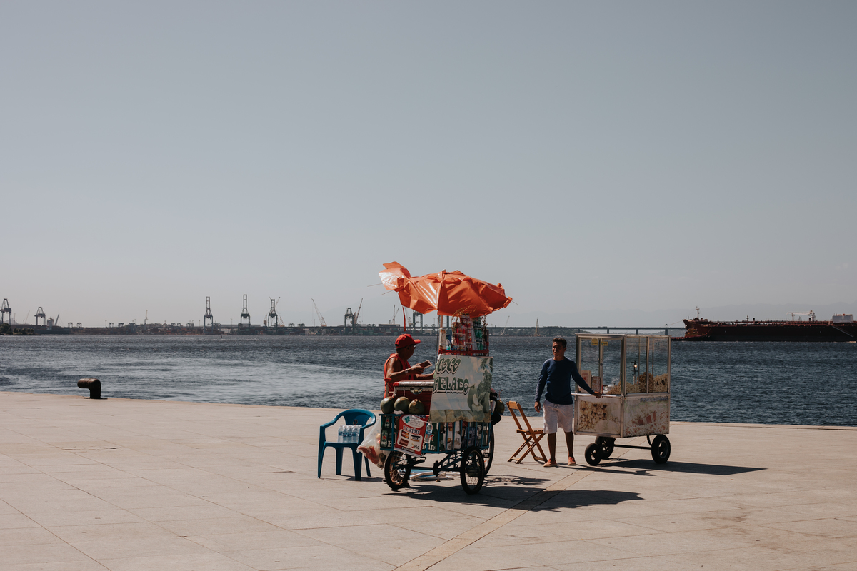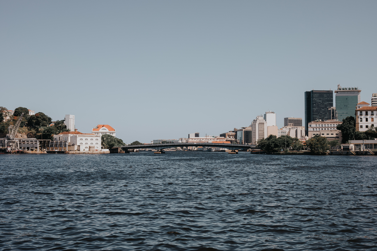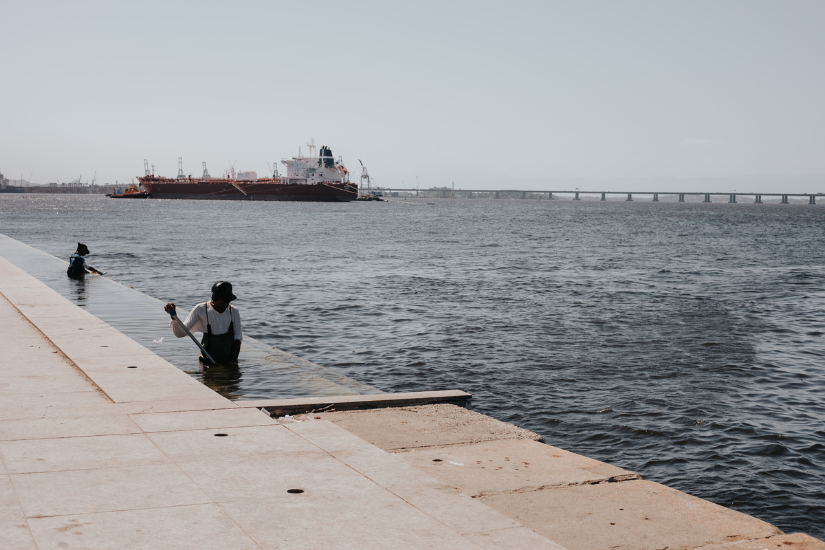 A água da Guanabara se move como um corpo vivo, ora mansa, ora densa, sempre refletindo o céu e a cidade. Ao redor dela, tudo vibra: sons, cheiros, passos, histórias. É um espaço de encontros e contrastes, onde o cotidiano se mistura à grandeza do cenário natural e industrial.