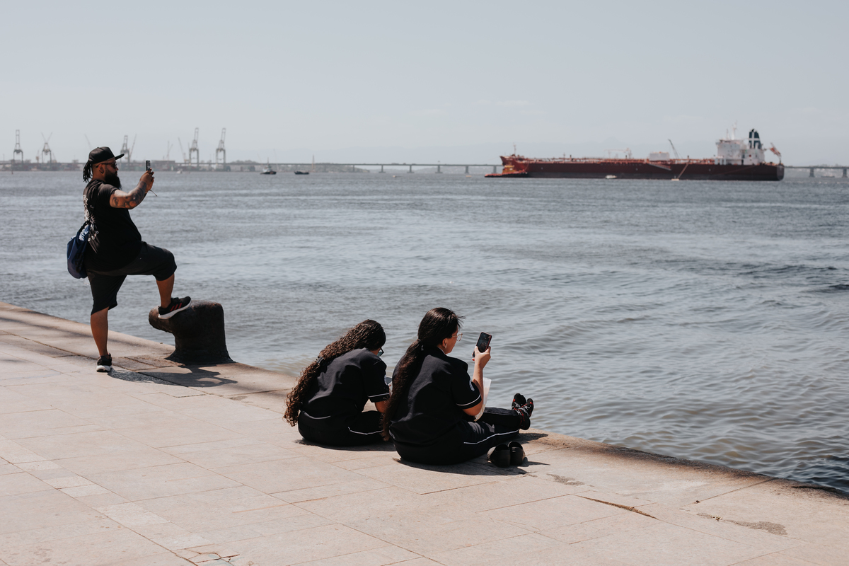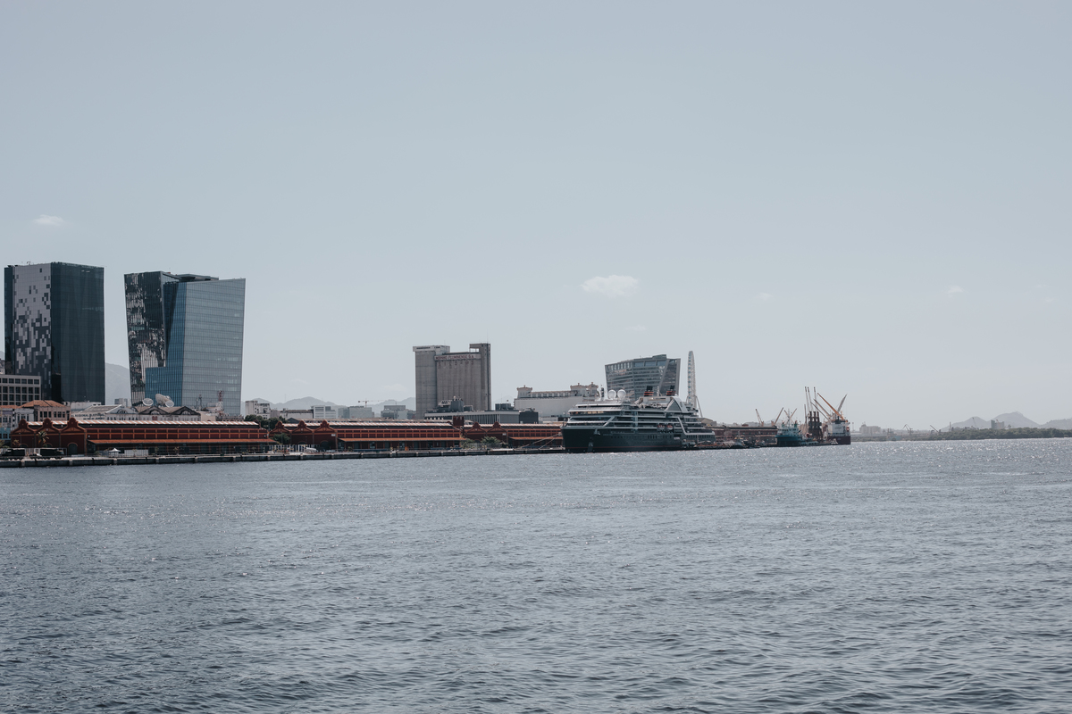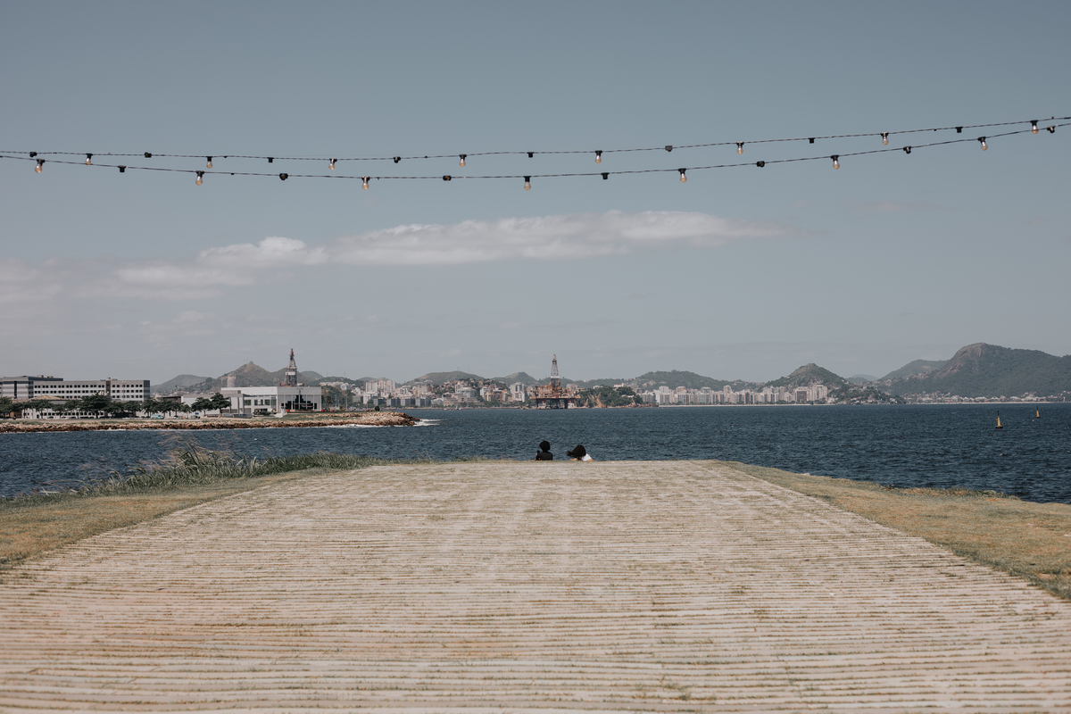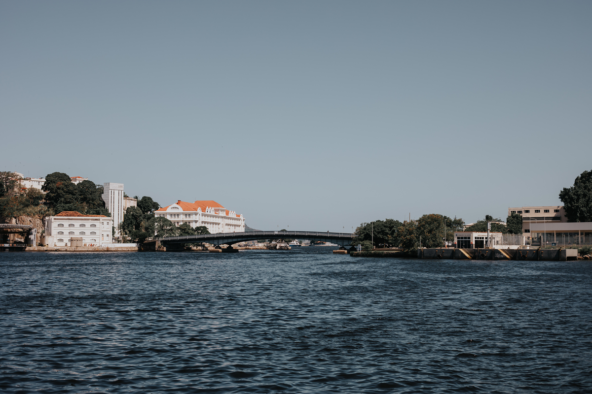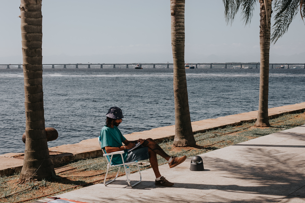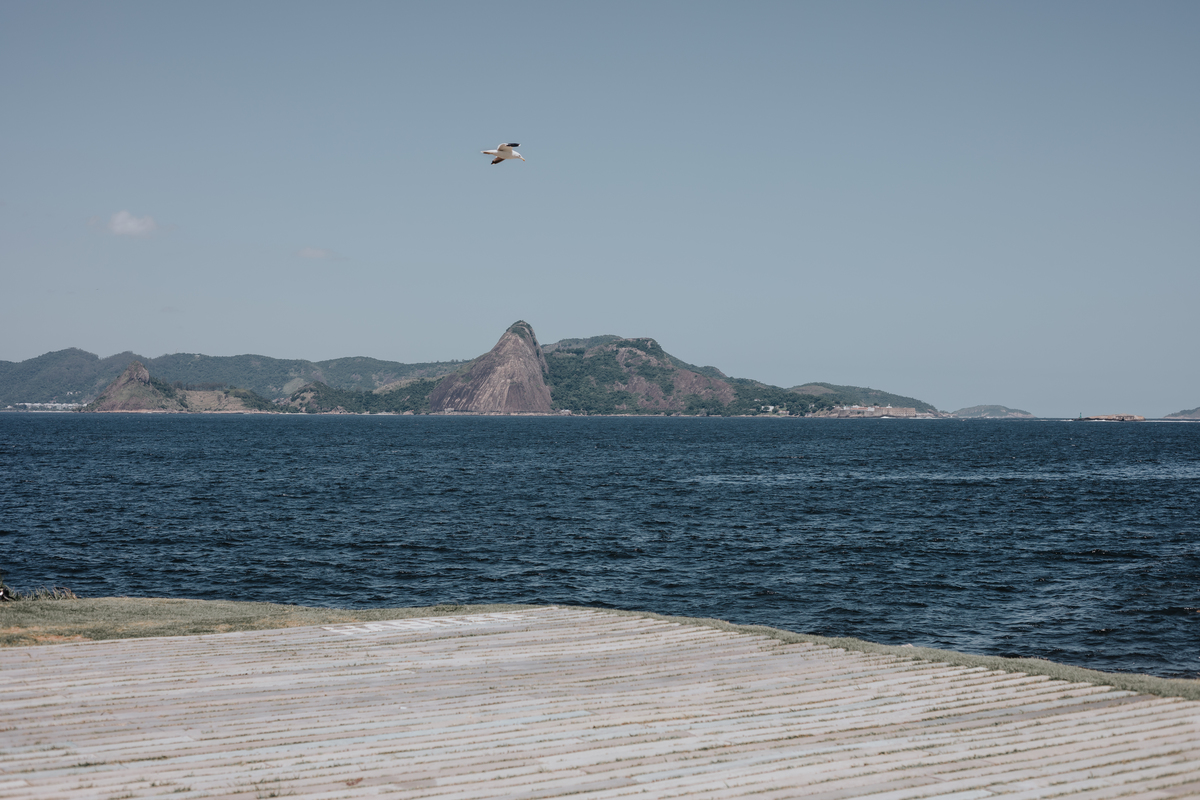 A água da Guanabara se move como um corpo vivo, ora mansa, ora densa, sempre refletindo o céu e a cidade. Ao redor dela, tudo vibra: sons, cheiros, passos, histórias. É um espaço de encontros e contrastes, onde o cotidiano se mistura à grandeza do cenário natural e industrial.