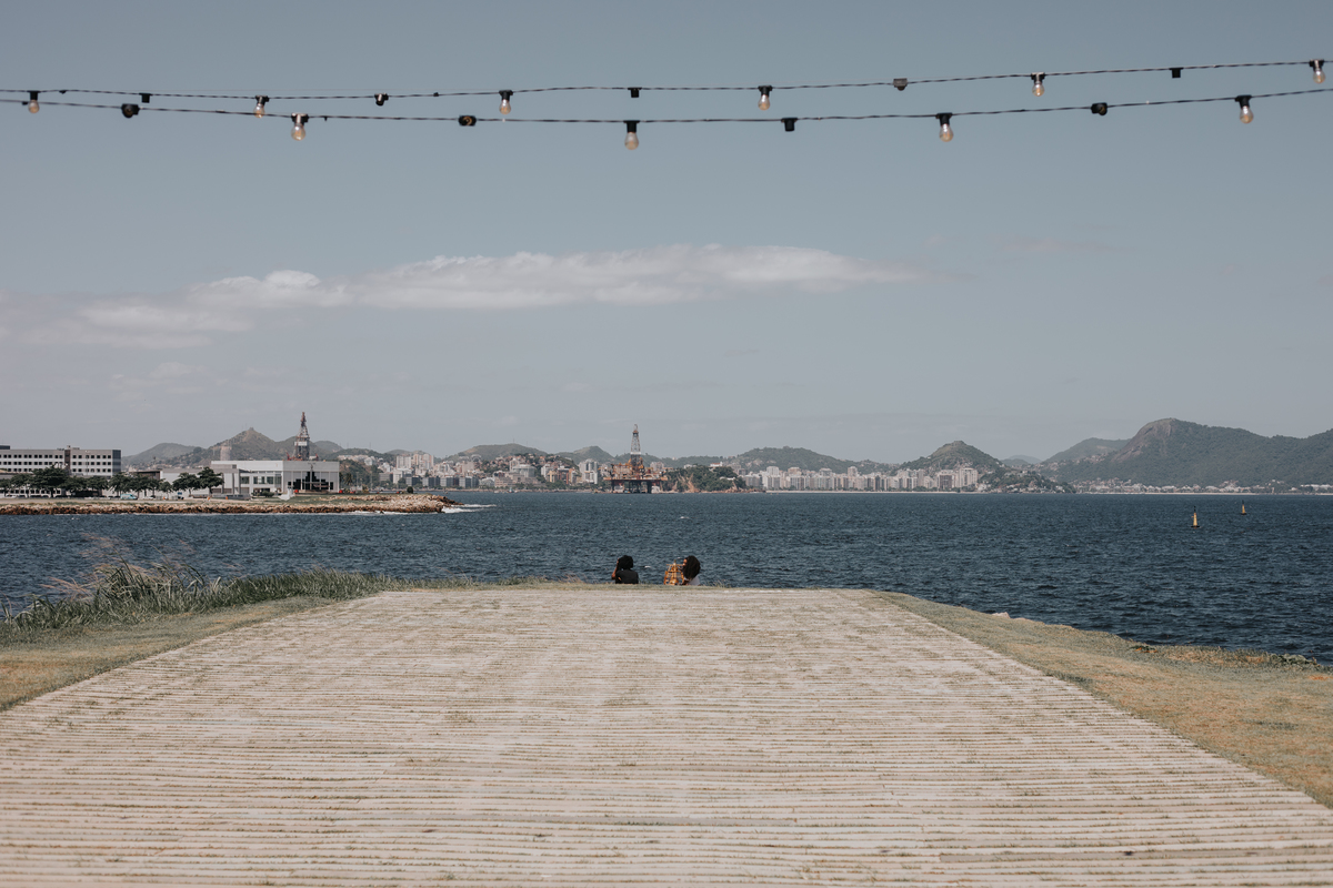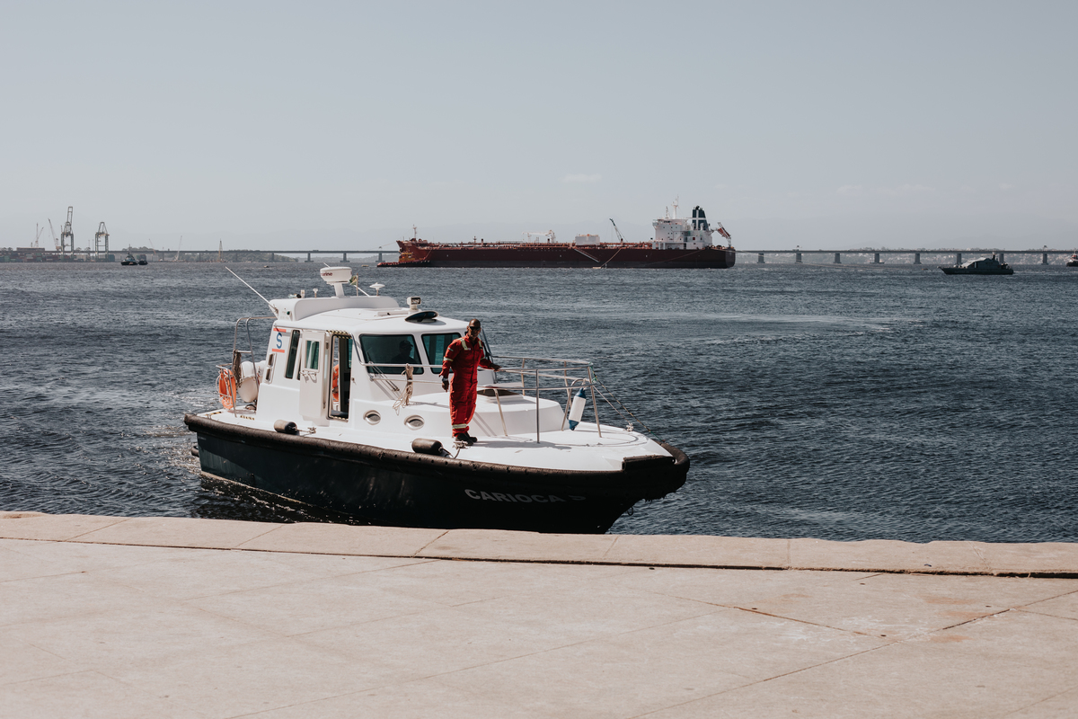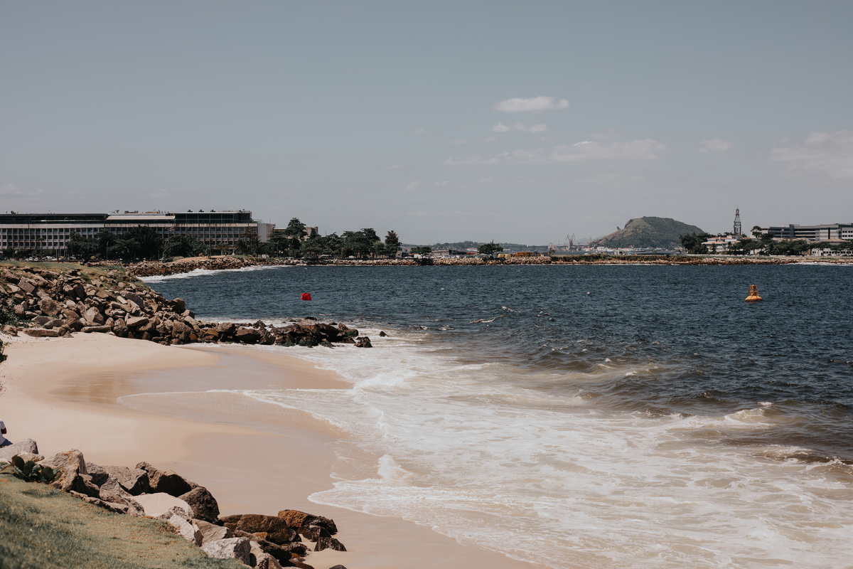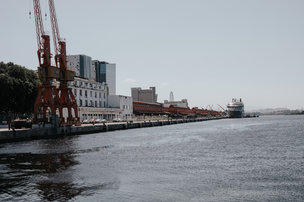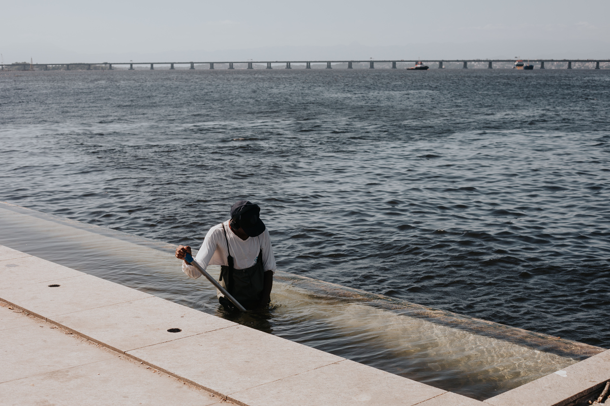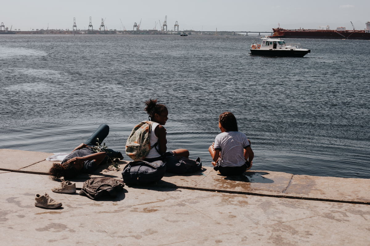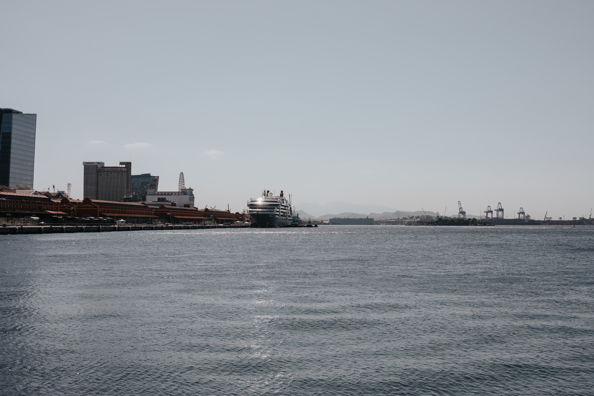 A água da Guanabara se move como um corpo vivo, ora mansa, ora densa, sempre refletindo o céu e a cidade. Ao redor dela, tudo vibra: sons, cheiros, passos, histórias. É um espaço de encontros e contrastes, onde o cotidiano se mistura à grandeza do cenário natural e industrial.