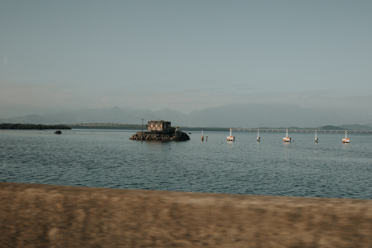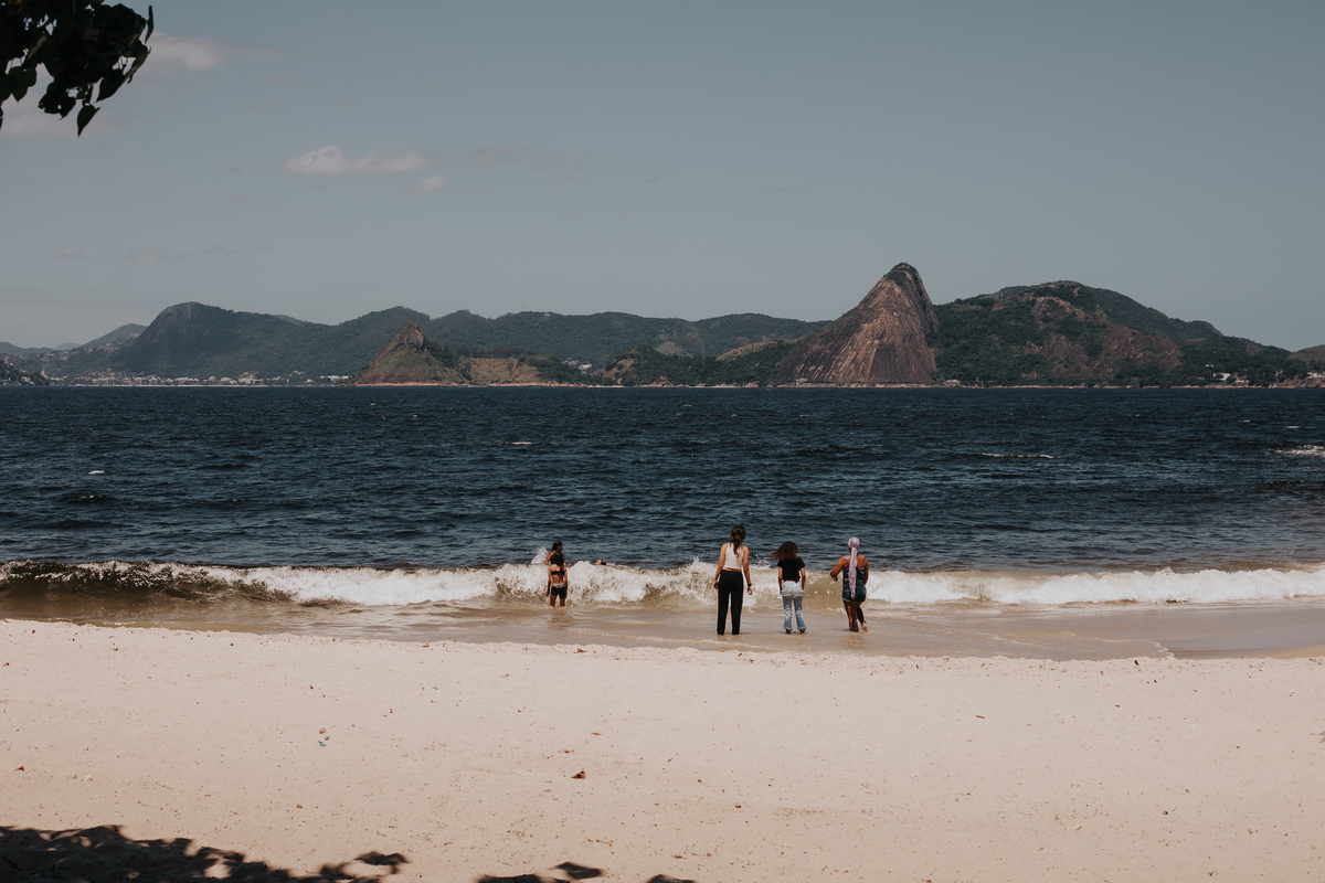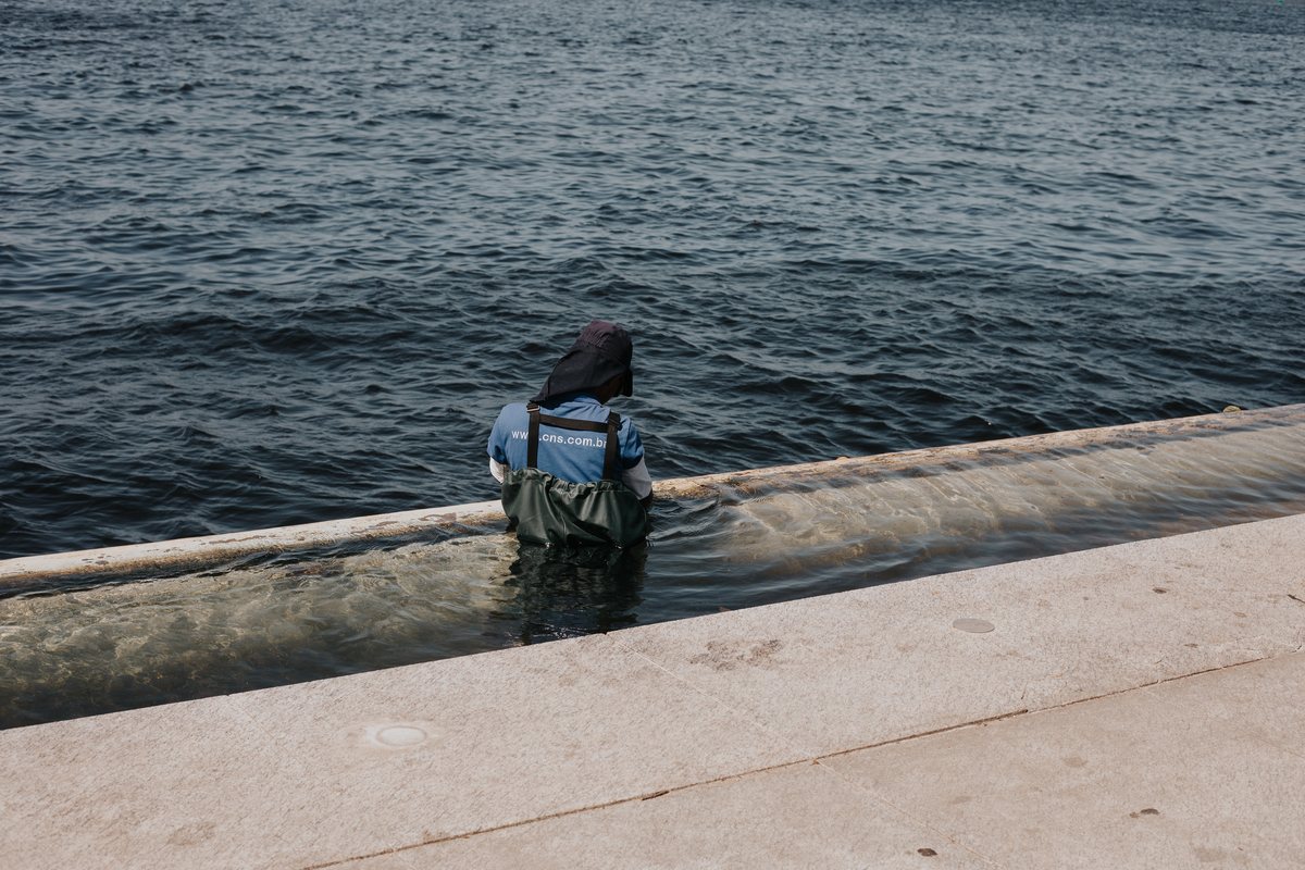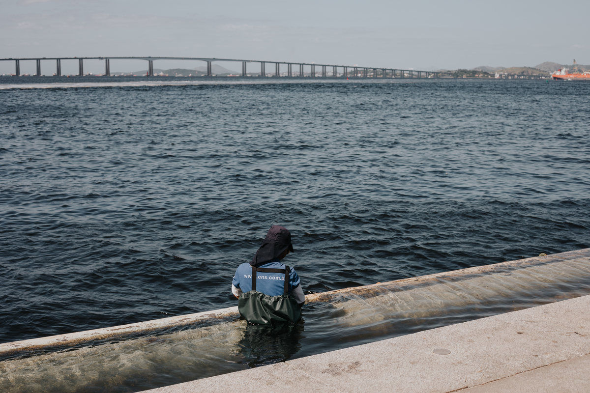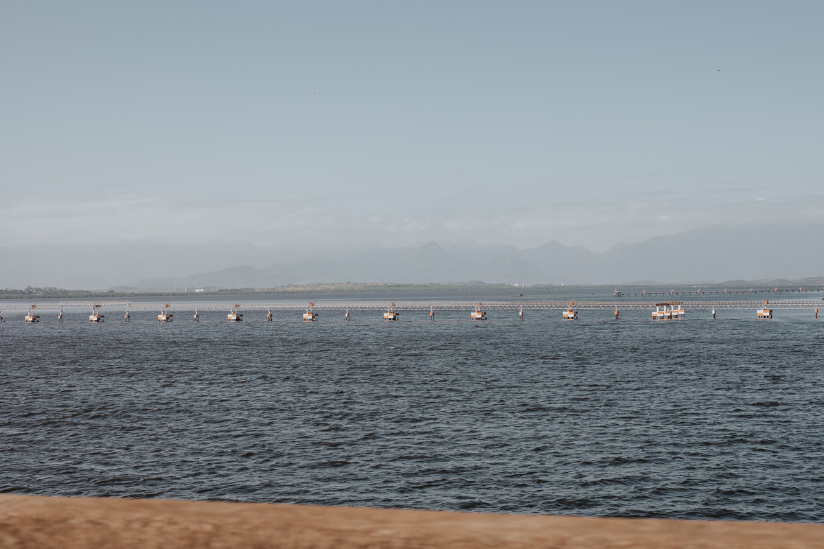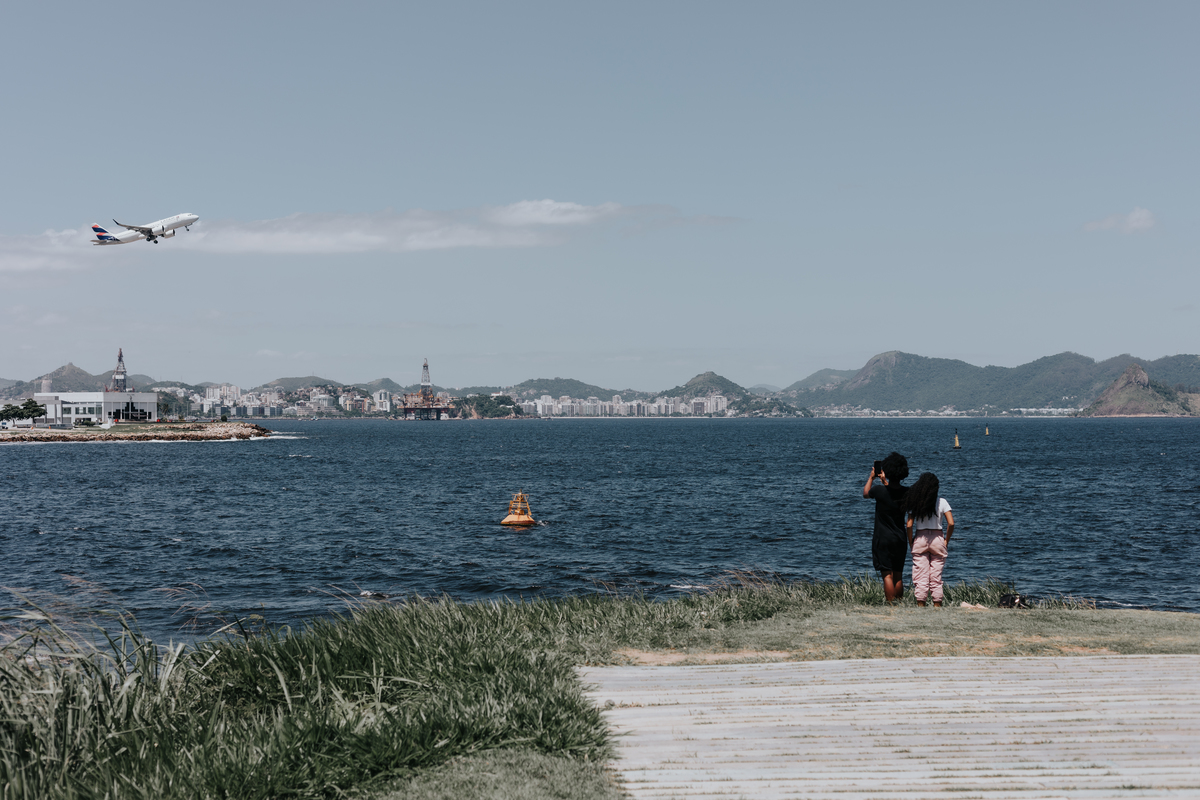 A água da Guanabara se move como um corpo vivo, ora mansa, ora densa, sempre refletindo o céu e a cidade. Ao redor dela, tudo vibra: sons, cheiros, passos, histórias. É um espaço de encontros e contrastes, onde o cotidiano se mistura à grandeza do cenário natural e industrial.