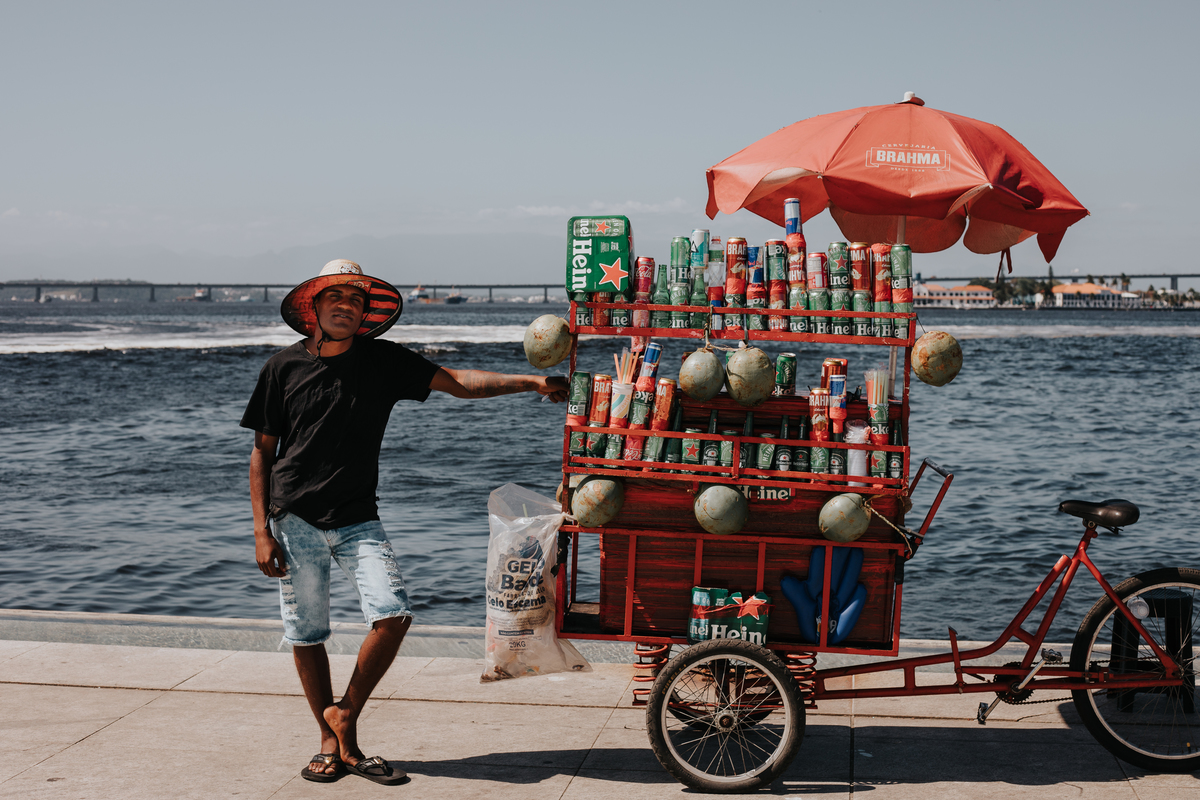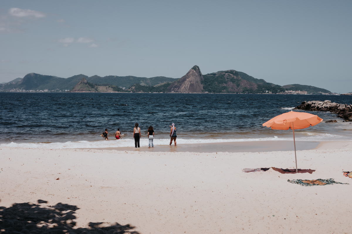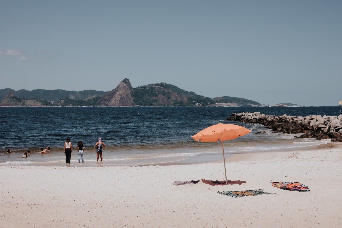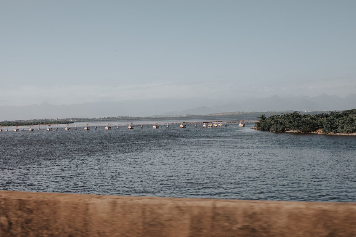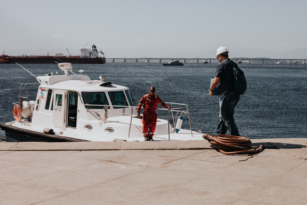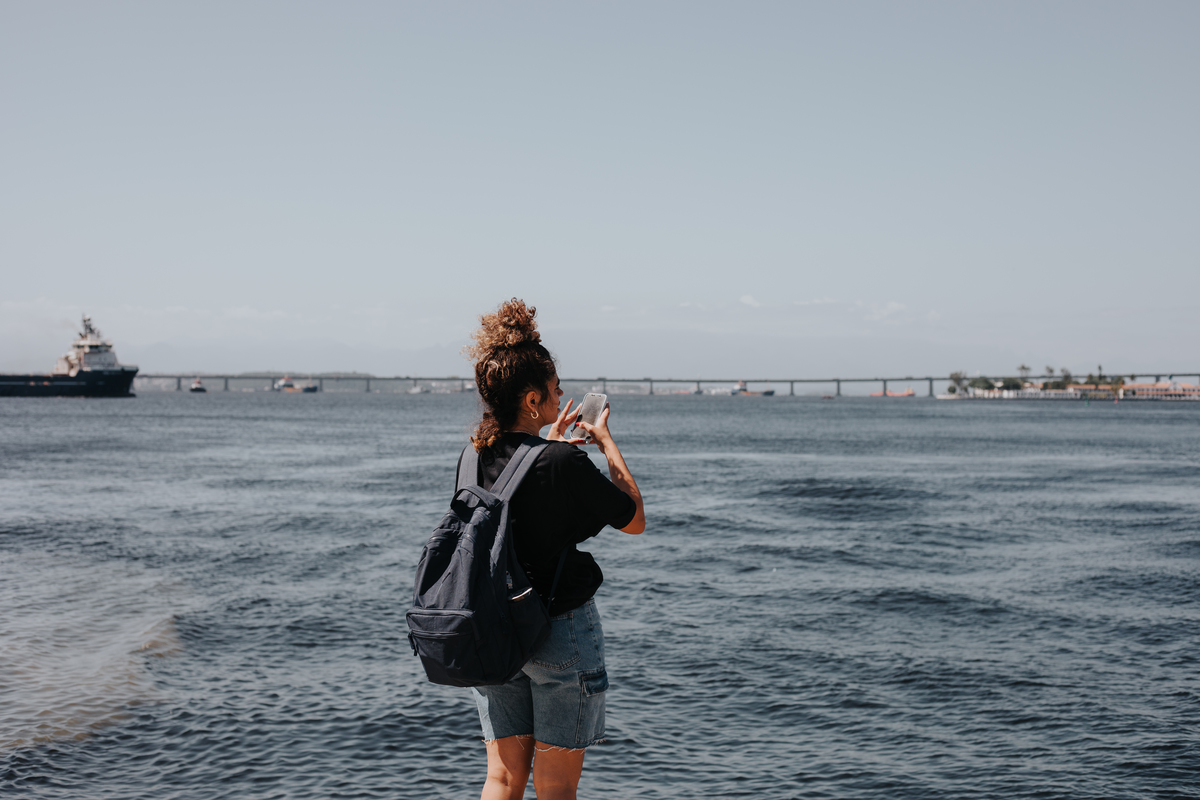 A água da Guanabara se move como um corpo vivo, ora mansa, ora densa, sempre refletindo o céu e a cidade. Ao redor dela, tudo vibra: sons, cheiros, passos, histórias. É um espaço de encontros e contrastes, onde o cotidiano se mistura à grandeza do cenário natural e industrial.
