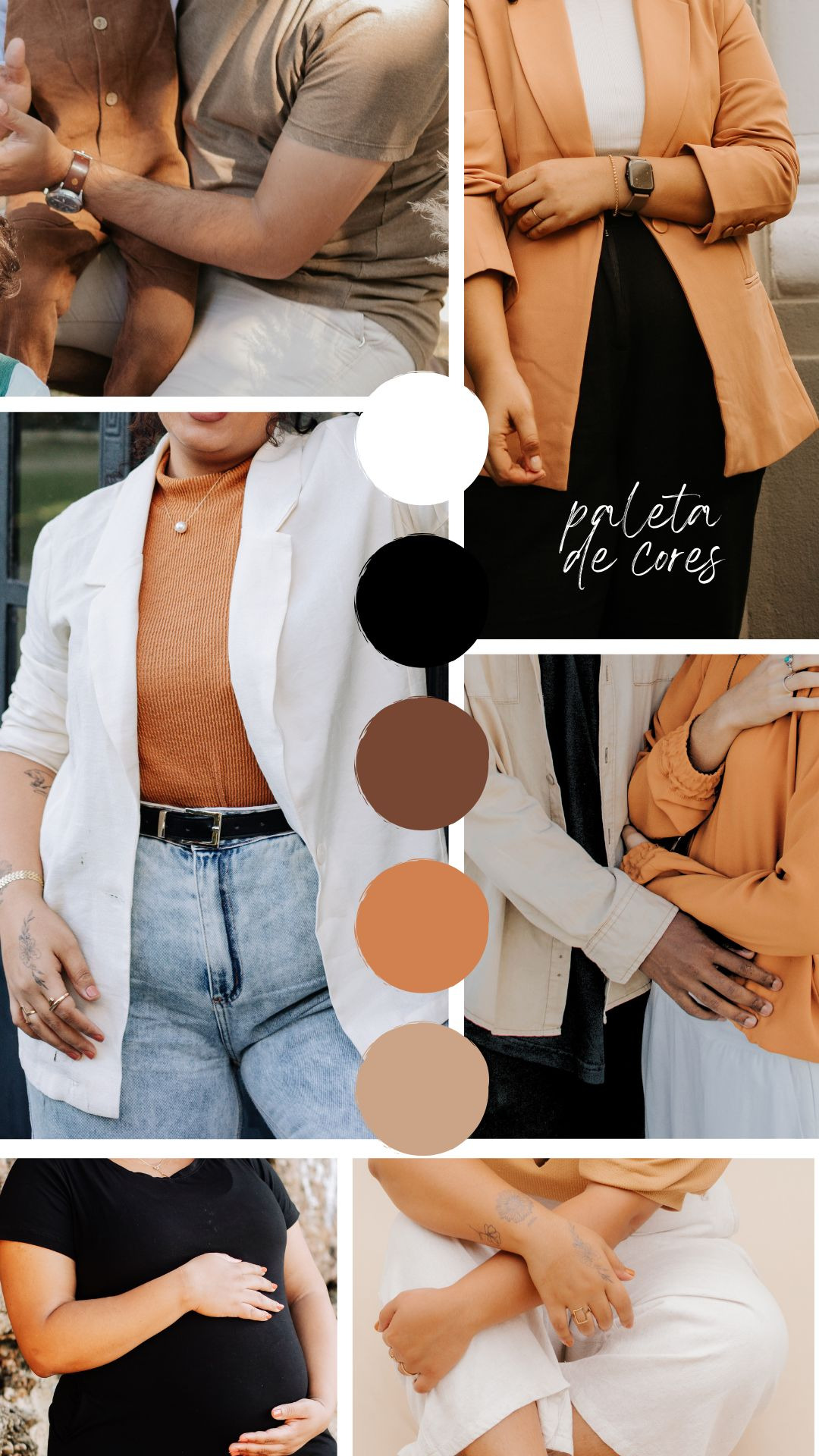 Cada fotógrafo trabalha sua paleta de cores como mais lhe agrada, eu gosto das cores neutras como branco, preto e bege. Também gosto de verde musgo, bege, marrom, caramelo. Também é possível explorar rosas e azuis especialmente nos ensaios com bebês, nesse caso eu opto por tons delicados como os pastéis.